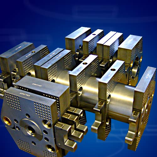 Complex 3D machined multistack tools using robotics to transfer tubing.